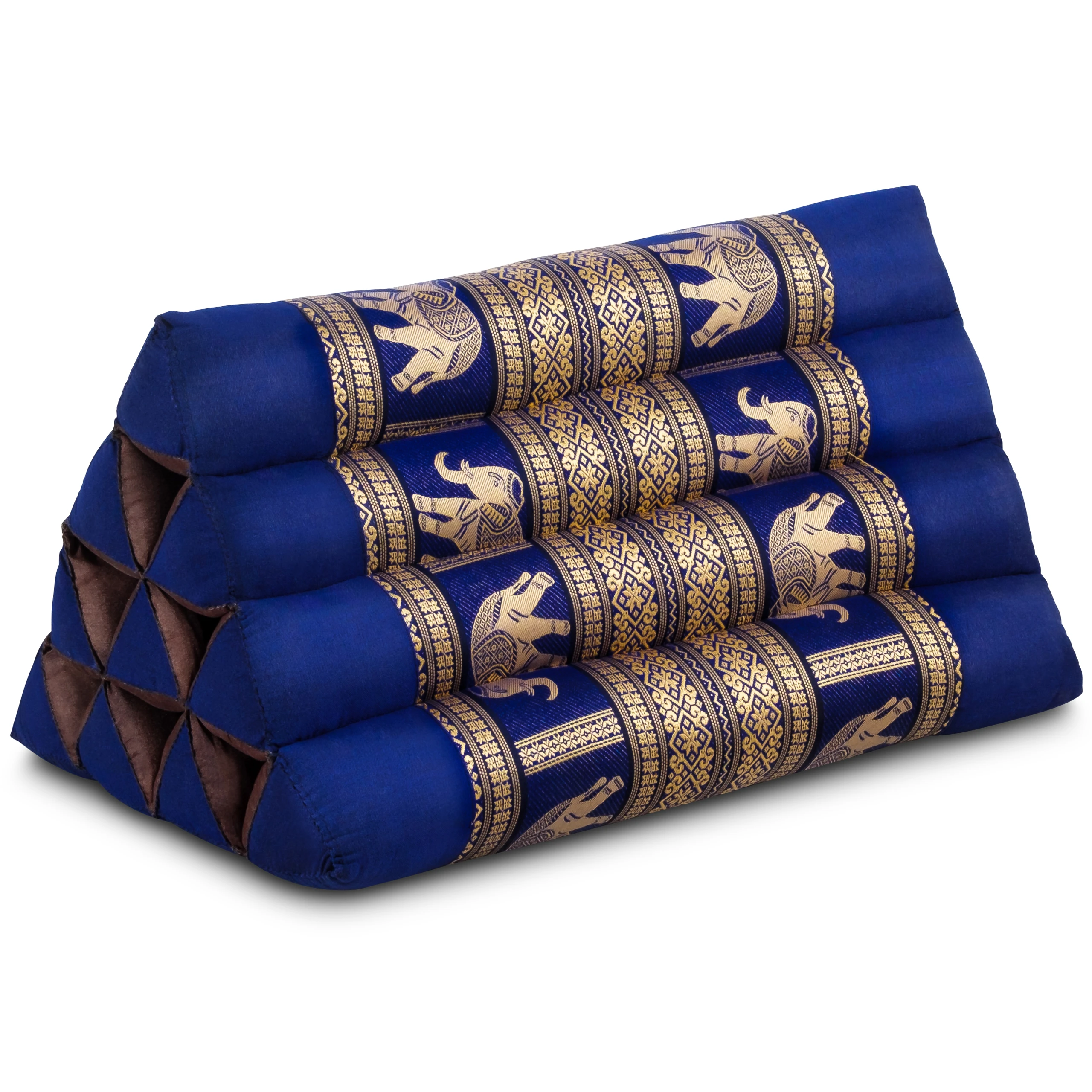 Coussin triangulaire en kapok, Deluxe (Bleu/Éléphants Soie)