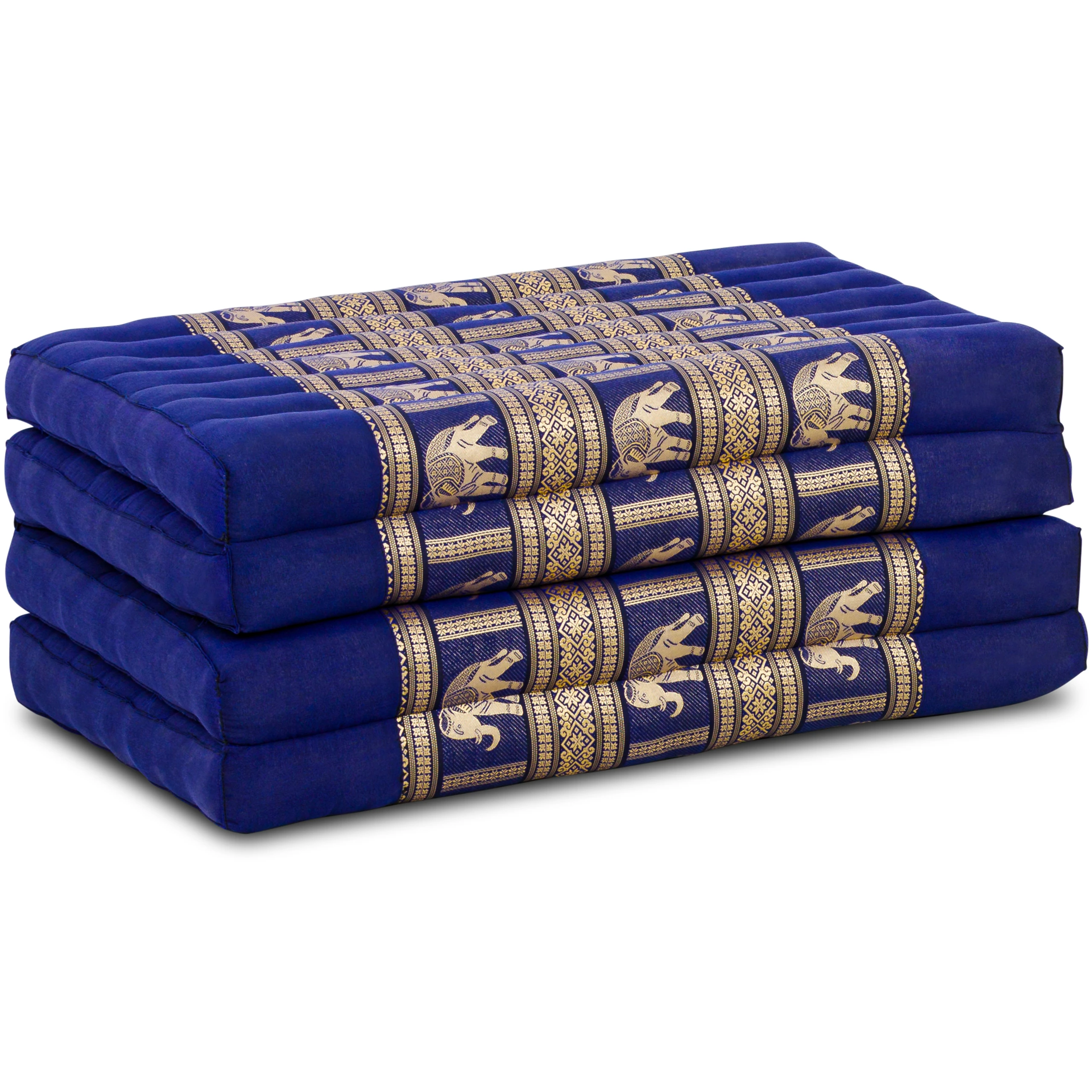 Matelas pliable en kapok, 80 cm de large, Deluxe (Bleu/Éléphants Soie)