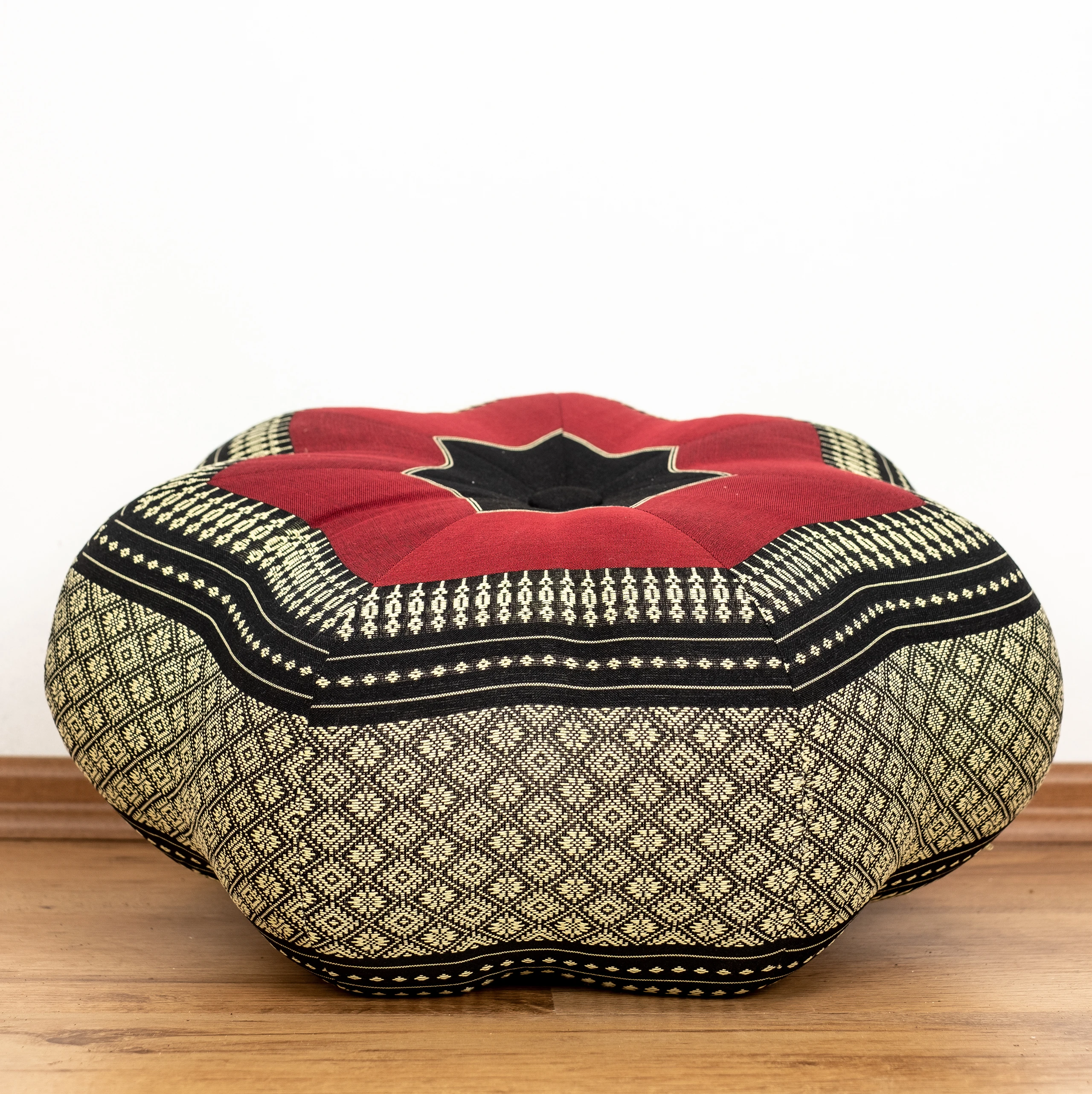 Zafu étoile grande taille en kapok (Noir/Rouge)