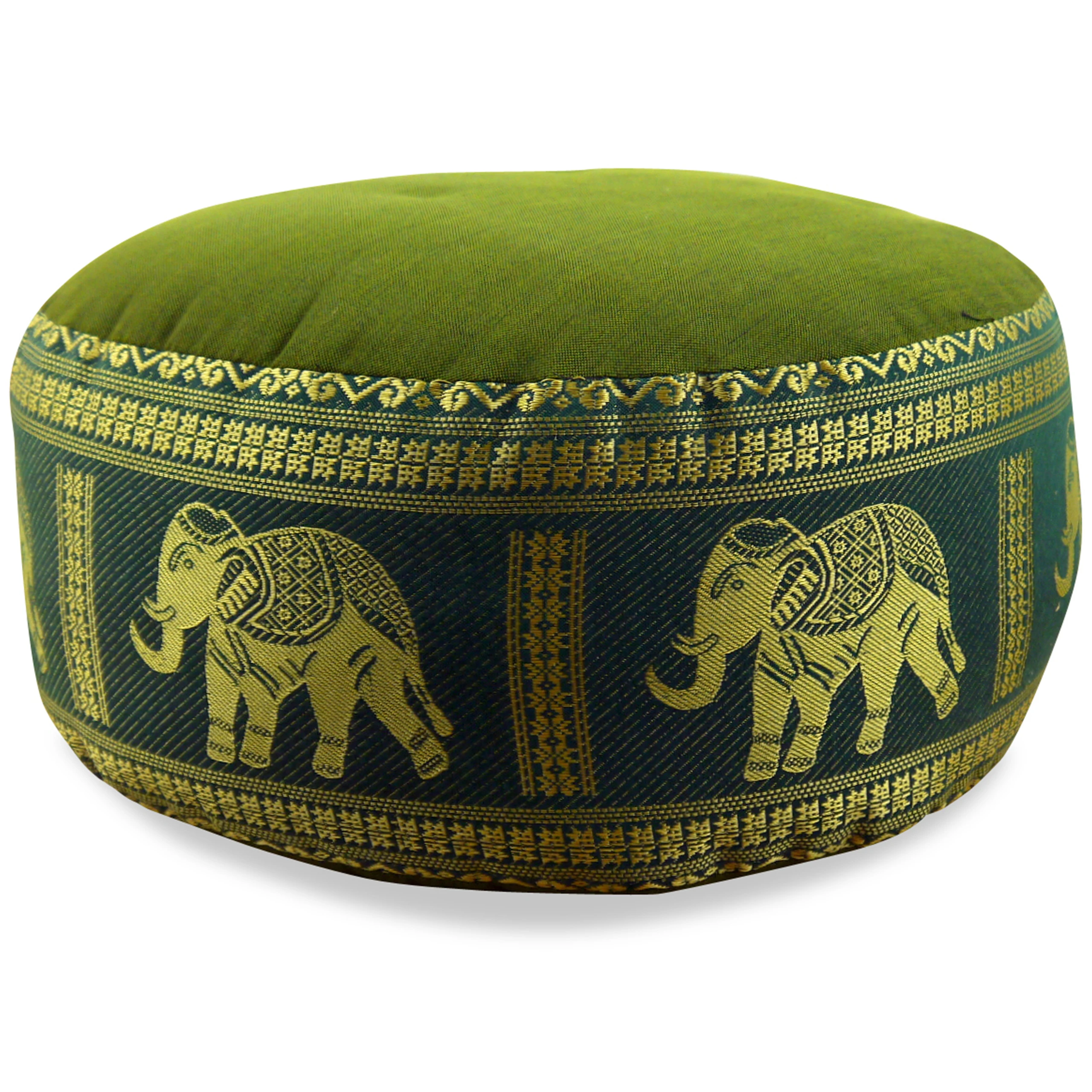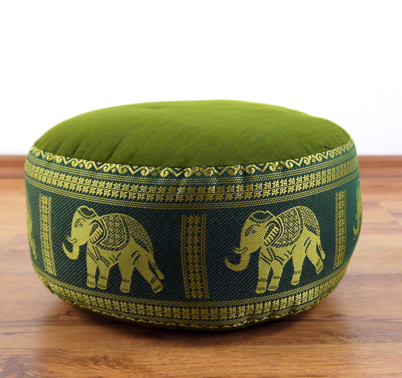 Zafu petite taille en kapok, Deluxe (Vert/Éléphants Soie)